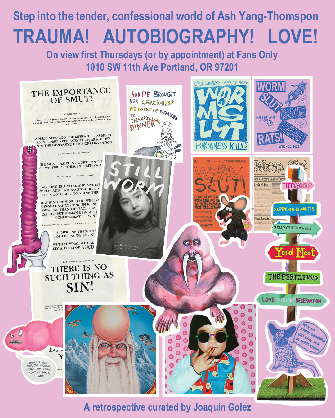 She'll be joined by Dena Rash Guzman, author of the new project, Scraps for Doomsday, and Ashley Yang-Thompson, publisher of Wormslut zines and author of the graphic novella, How to be the worst laziest fattest most incontinent piece-of-shit in the world EVER.