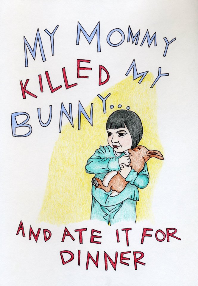 I made The Coloring Book for Fucked Up Kids for an assignment in my first drawing class with Craig Hill. It tells the story of a Chinese-American girl whose classmates nicknamed her Ting Ting and whose mom killed her pet rabbit and ate it for dinner. It tells the story of love lost in translation, the difficulty of understanding across cultures, and the challenge of tolerating your own family. It tells the story of the lonely, messy, vibrant upbringing of the displaced.